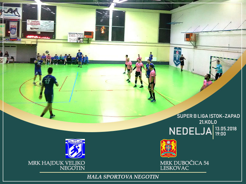 Autor Bojan ŽivanovićNegotinski rukometaši u 21. kolu Super “B” lige istok-zapad, u nedelju od 19 sati u Hali sportova u Negotinu dočekuju ekipu Dubočice iz Leskovca. Hajduk Veljko trenutno na šestom mestu sa 22 boda, a Dubočica na četvrtom sa bodom više.