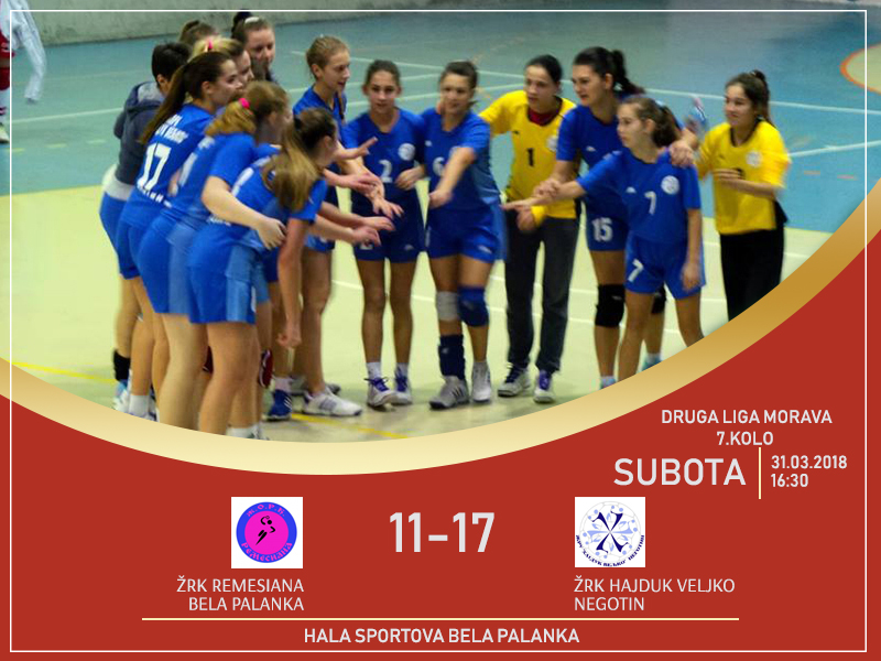 Rukometašice Hajduk Veljka u 7. kolu Druge lige Morava na gostovanju u Beloj Palanci savladale domaću Remesijanu sa 11:17. Negotinske rukometašice sa šest bodova na trećem mestu. U narednom kolu rukometašice Hajduk Veljka gostovaće u Beloj Palanci.