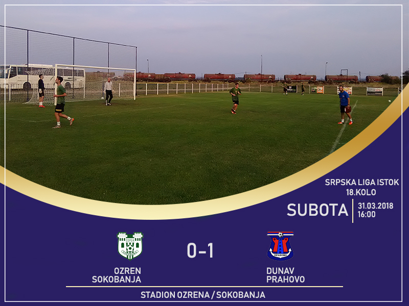 Fudbaleri Dunava iz Prahova u 18. kolu Srpske lige Istok na gostovanju u Sokobanji savladali Ozren minimalnim rezultatom 1:0. Jedini pogodak na utakmici postigao Zajić u 28. minutu iz penala. Dunav trenutno sa 23 boda na desetom mestu uz utakmicu manje.