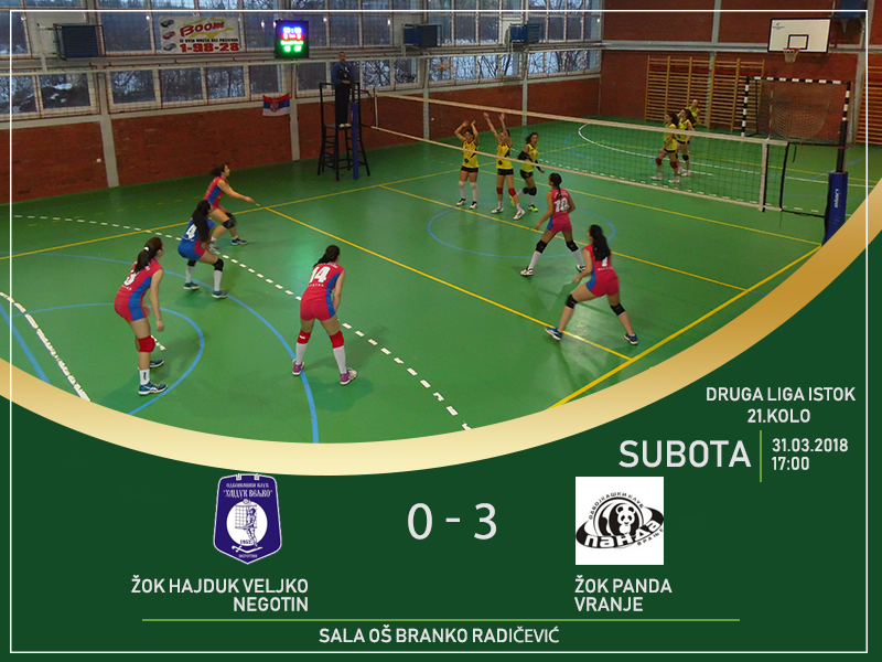 Odbojkašice Hajduk Veljka u 21. kolu Druge lige Istok poražene na domaćem terenu od OK „Panda“ iz Vranja sa 3:0, a druga muška ekipa od druge ekipe zaječarskog Timoka sa 3:1.